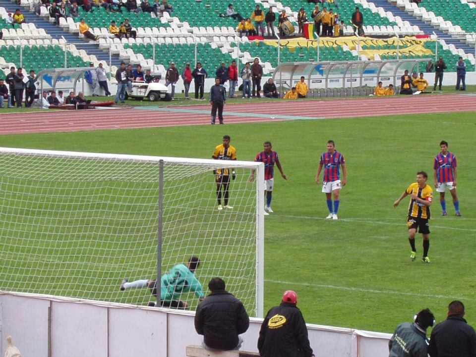 Nosotros partimos en el campo sur, ellos en el norte. Minuto ¿4?, el Pájaro Escobar cede para el Choco Chumacero y este se la lleva y
